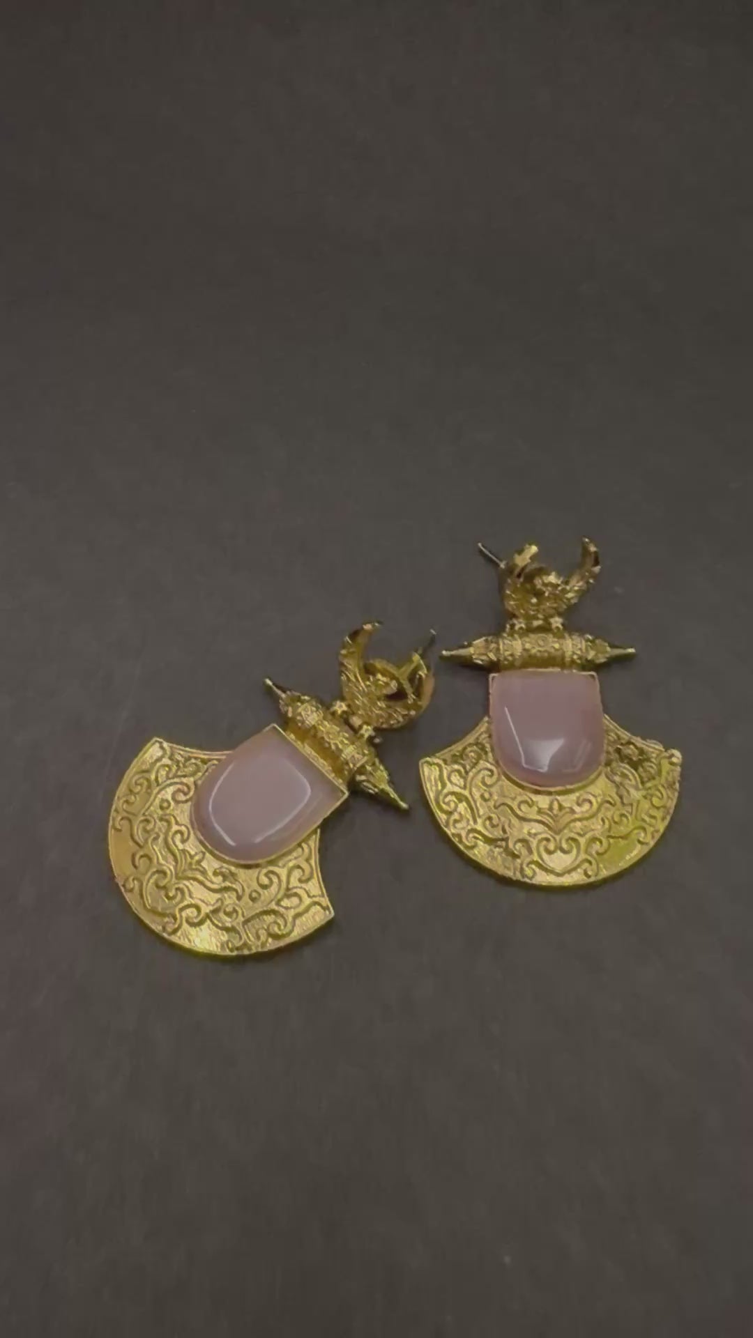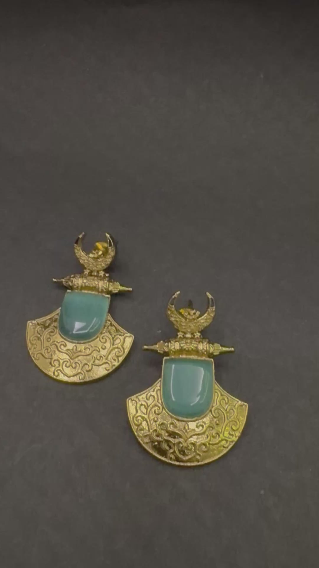 Inspired by ancient temple motifs, the Chandrakriti Temple Arcs feature a bold crescent form paired with intricate carvings and layered elements. Their structured silhouette and artisanal detailing create a powerful statement piece, perfect for elevating traditional and fusion ensembles with a touch of heritage grandeur.